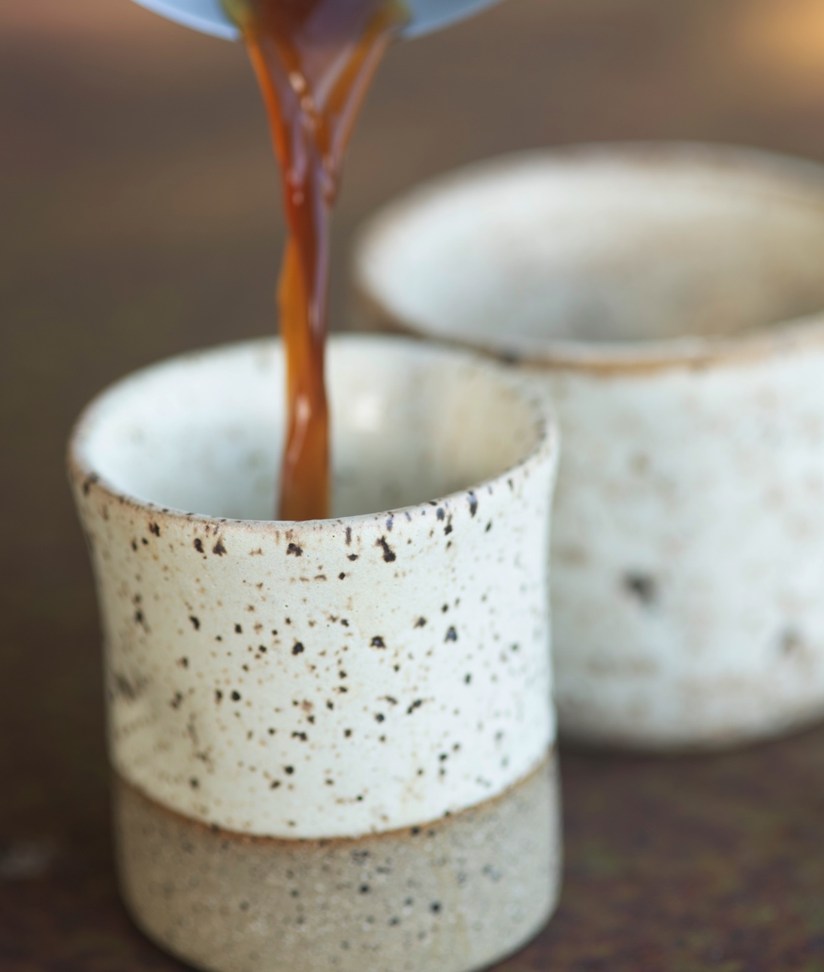 Piezas quemadas en dos hornos, la primera a 850° y una segunda esmaltada a 1260°.